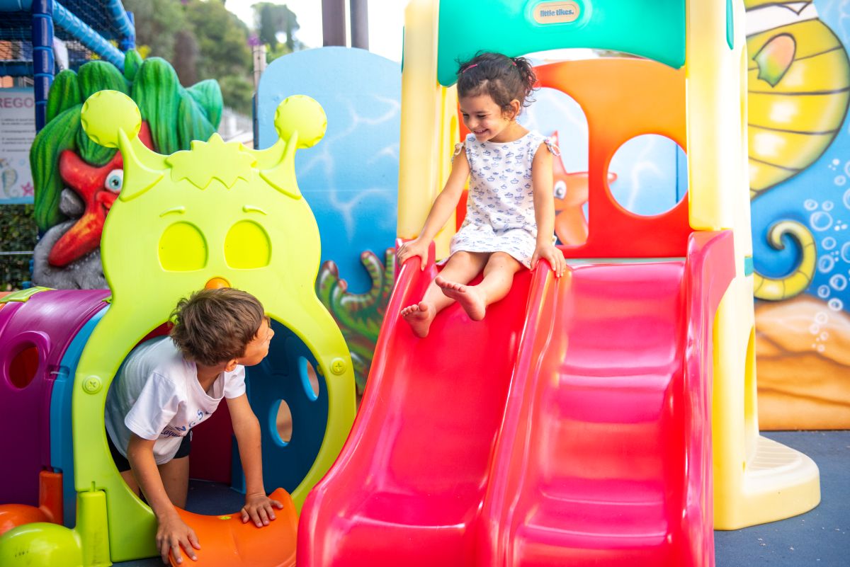Il cuore pulsante del divertimento è la nostra coloratissima terrazza giochi “Il Paradiso di Manu e Dede”, un’area all’aperto creata su misura per farli giocare in libertà.
